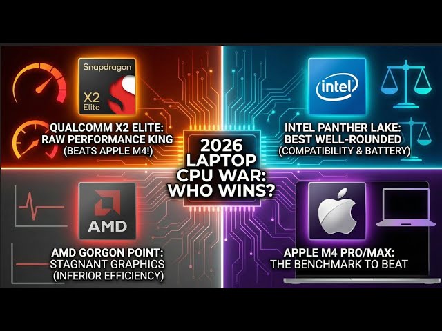 2026 Laptop Processor Wars: Intel Panther Lake, AMD Medusa, Qualcomm Snapdragon X2, Intel G-Series Handhelds, and Apple’s M-Series Evolution